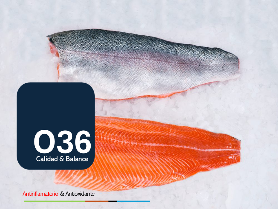 La formulación única de O36 logra establecer un balance entre los procesos inflamatorios y antinflamatorios, aportando ácidos grasos esenciales Omega 3 desde fuentes vegetales. Además agrega altas dosis de antioxidantes (Resveratrol) desde harinas de orujo de uvas.