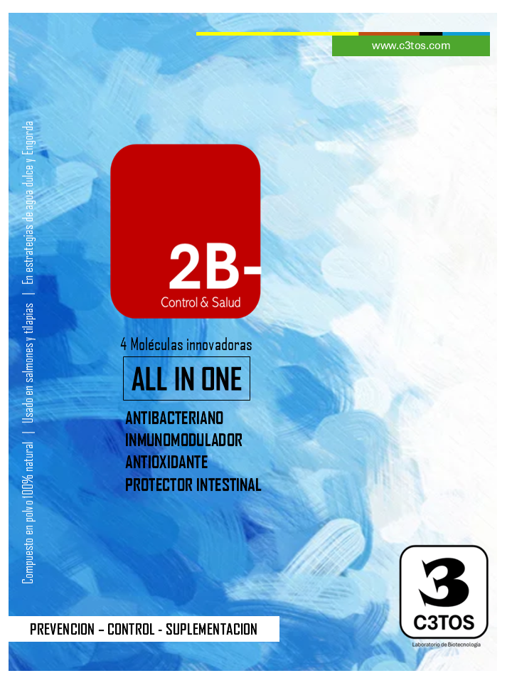 La formulación única de 2B-, es 100% natural a base de harinas estandarizadas. Logra que en un solo producto se unifiquen varios objetivos saludables, productivos y de gestión. Útil para todas las especies de peces de salmónidos y en cualquiera de las fases productivas (Útil en agua dulce y engorda)